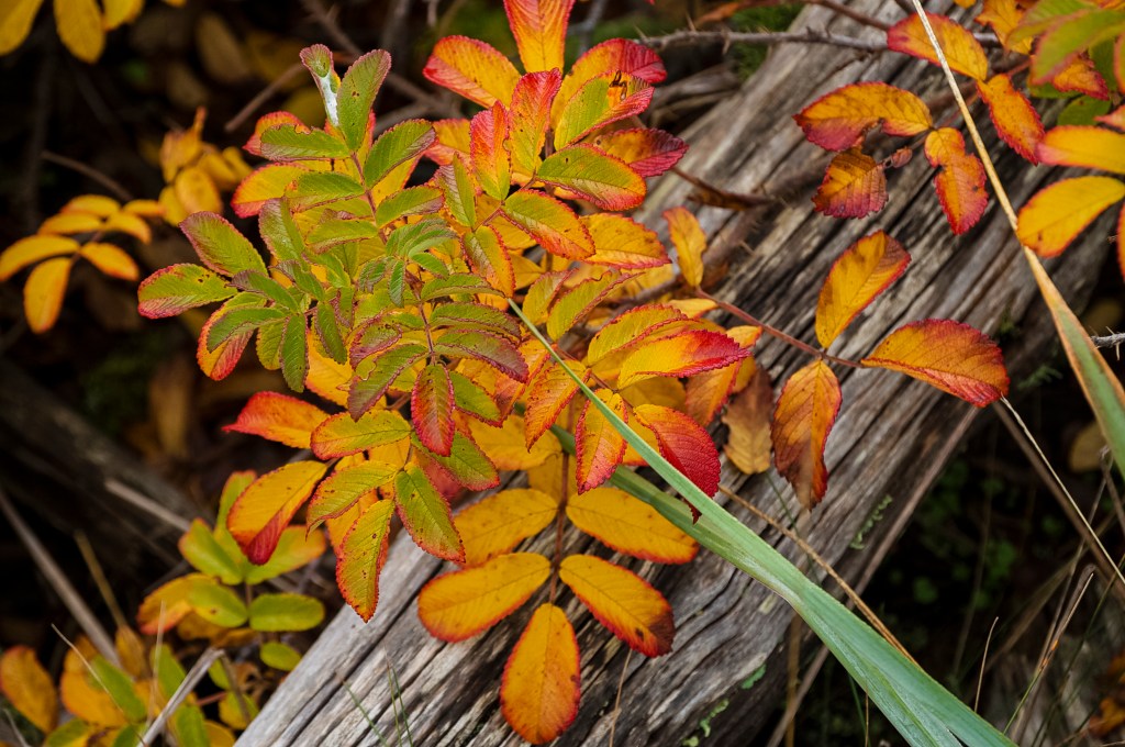 With a nod to the south, thank a neighboring state for Oregon Grape. A little spiky, their much smaller leaves excel at brighter colors. They won’t create a forest, but they’re the highlights around the edges and in the fields splashing colors down low, approachable.