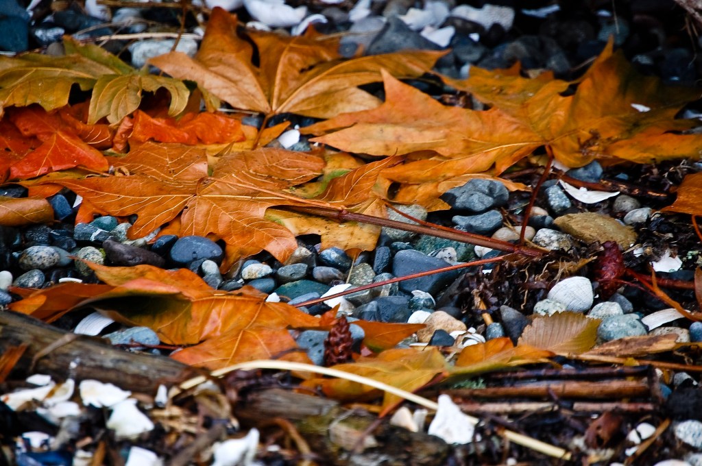 Start with the obvious one, the big trees. No, not the evergreens. They’re ever-green. Big Leaf Maples. Grand and broad, reaching out and up, growing so quickly that some call them weed trees. A pine falls, and while its neighbors’ seeds take root and turn into seedlings, a massive broad leaf acts like a mushroom with a very woody stem. Frequently that woody stem is more like a mushroom than most trees. It is relatively temporary, in tree terms. They grow quickly and large, but their core can be less structurally sound than a conifer. In the meantime, though, they make dinner-plate sized leaves that mask the ground, providing cover for critters and the life that turns death into compost. Eventually, the patience of those coniferous seedlings wins through and the forest tries to re-establish pines, firs, and cedars; but in the meantime, enjoy the kids picking up leaves bigger than their heads.