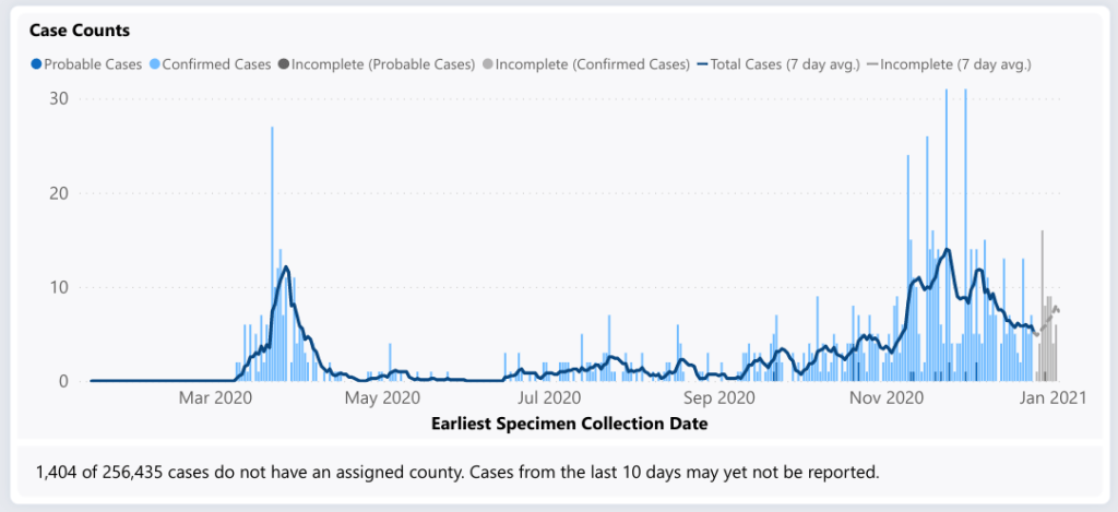 Sigh. We’re all getting at least somewhat weary. Another month, another report on the pandemic because too few people are wearing masks, and too few people are social distancing. At the same time, thanks to all of the islanders who are acting responsibly, wearing masks, social distancing, washing hands, and helping out. November and then December saw more Covid-19 cases than we saw during the peak back in April.