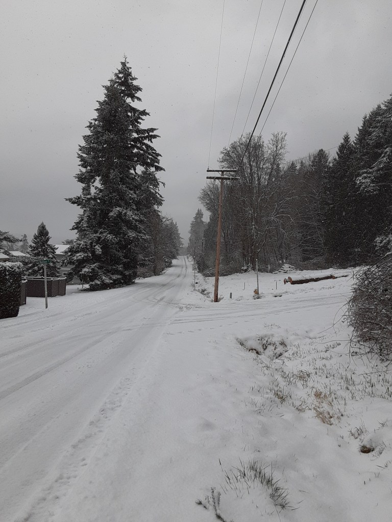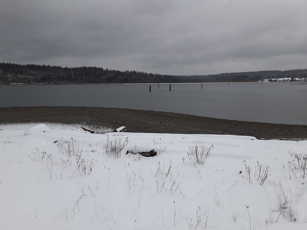 Water from the southwest. Cold air from the north and the east. They all collided over Puget Sound and Whidbey Island. Snow.