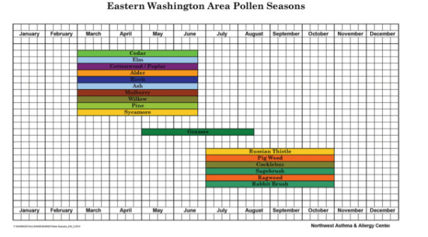 Welcome to the Puget Sound where it looks like someone forgot to organize the plants. Some pollens show up in January, which begins a rolling parade of different allergens of various lengths and strengths through September. There’s more of a reason and season to sneeze, but it is harder to know what’s making people reach for their handkerchiefs this week.