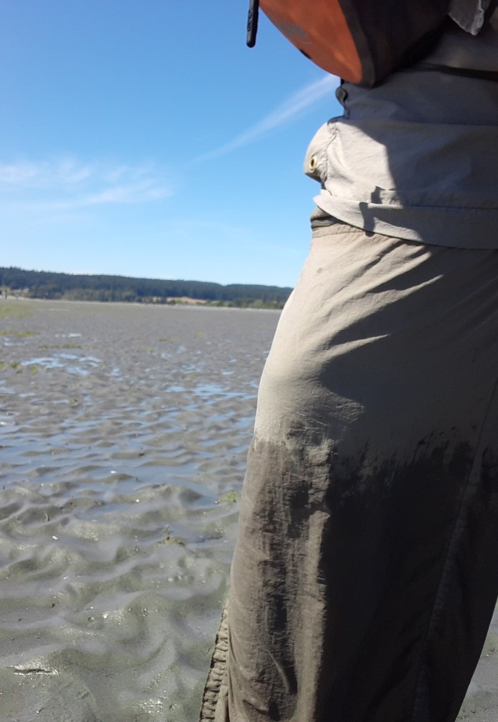 Wandering the tidelands can be entertaining, just remember to watch the clock if a rising tide could cut you off from your otherwise dry return. Swimming does happen. Getting stuck in the mud happens, too; so be careful about where you step and how you pick your path.