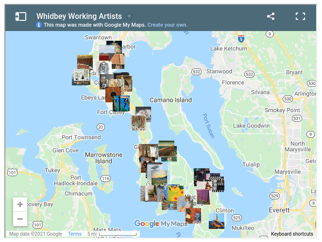 Doh! Did you miss it too? The Coupeville Arts & Crafts Festival was scheduled for last weekend. Summer is a busy time on Whidbey. Here’s another art opportunity, the Whidbey Working Artist Summer Studio Tour is happening August 21 and 22, 2021. Are you reading this post months after that? Don’t worry. There are so many artists on Whidbey Island that almost every weekend there is probably a festival, a weekend tour, a standing self-guided tour, art walks, galleries, or sculpture gardens to visit.