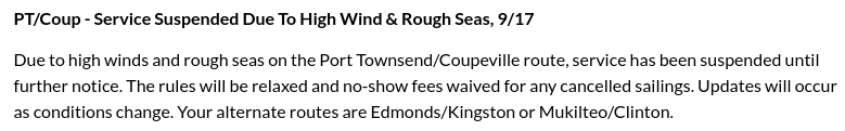 While the winds may mean 40 mph conditions for Navy pilots, and enough to close the ferry out of Coupeville, it is only 20 mph for the south end where things are merely breezy.