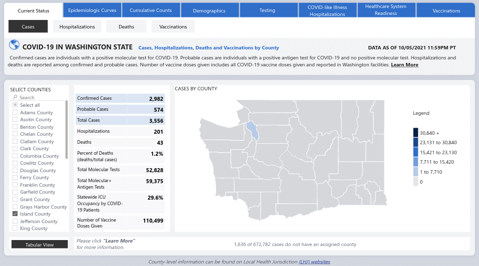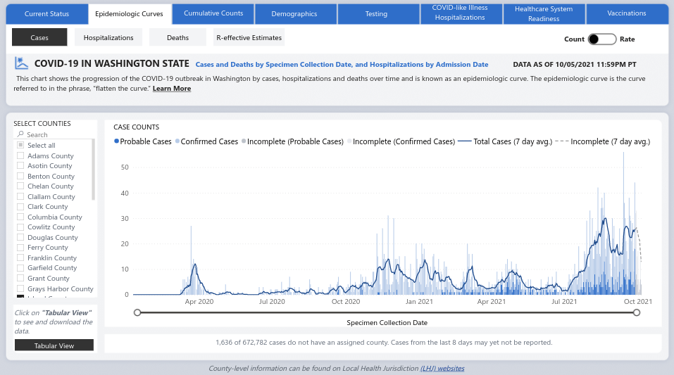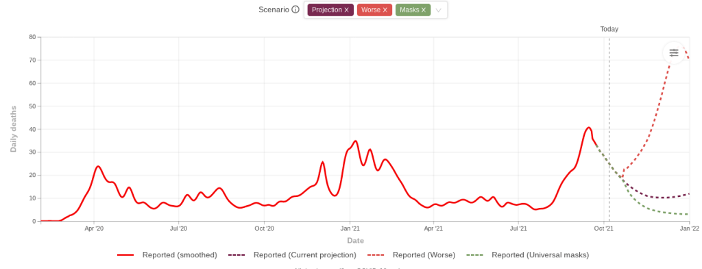 Washington State’s numbers are dropping after spiking higher than at any time during the pandemic. With masking we could be down to the lowest recent levels of the pandemic by the end of the year. The worst case scenario, however, suggests that the pandemic could basically become the new normal.