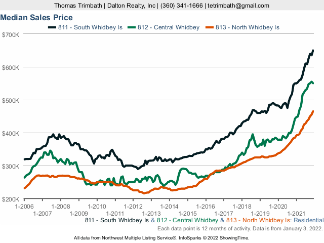 - Comparing Whidbey Island to three cities on the mainland (Seattle, Bellingham, Everett), Whidbey Island maintains the lowest median sales price.