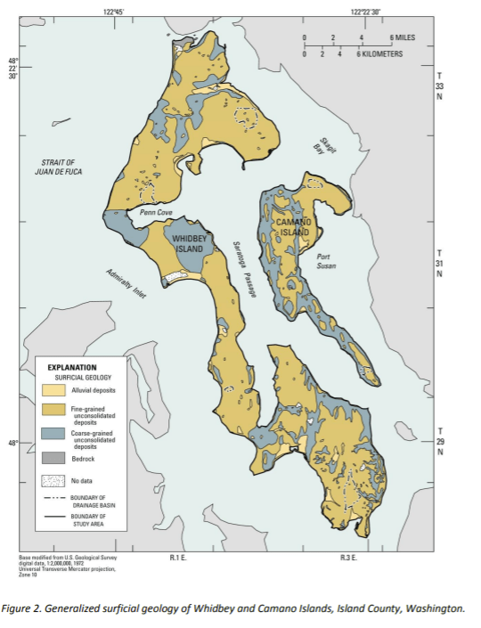 Geology – Whidbey is called The Rock by some, and for good reason. The island is known internationally within the geology community. Sadly, there isn’t one map that rules them all (but pass it along if you find it – found it, see below), because Whidbey is so long and skinny that it is part of a few other maps. Have fun stitching them together.