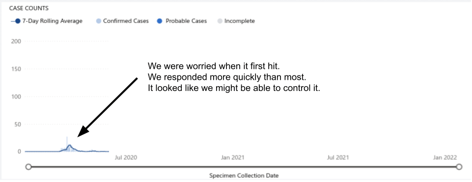 For the majority of the time since the first few months, Washington State has been doing better than most; though now we’re more like most of the country.