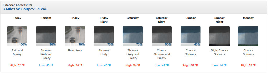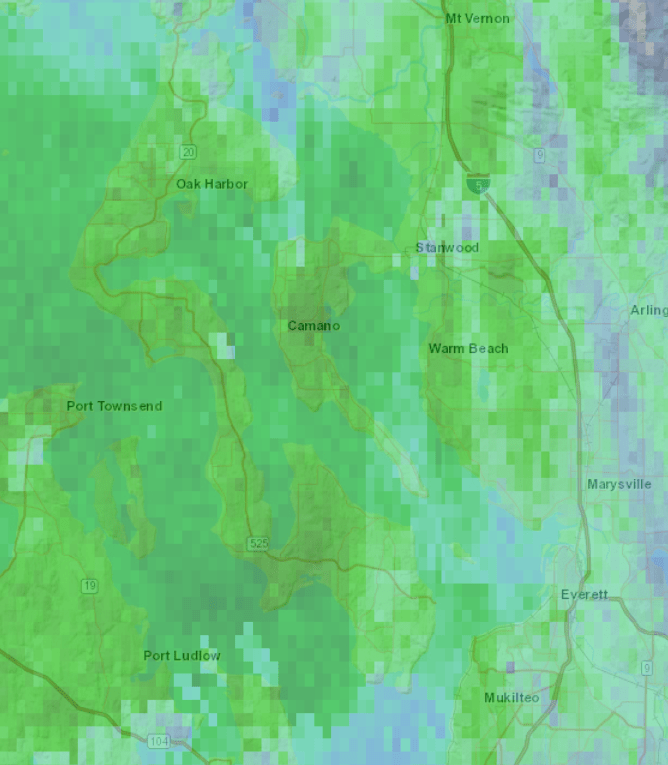 Whidbey Island sits in a temperate zone. It rarely gets very cold or very hot. Some places get wetter than most, but some enjoy the rain shadow provided by the Olympic Mountains. The Banana Belt may be more likely to grow pumpkins, but it is known for being warmer and drier than most of the land around the Salish Sea. Not this week.