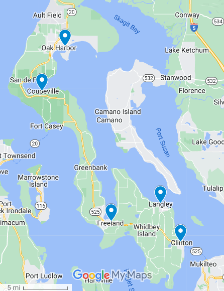 Oak Harbor’s is the largest. Coupeville has a large meeting room. Freeland is a site for researching fundraising in more depth than most. Langley’s is very walkable, with shops and such nearby, ala Coupeville. Clinton is the smallest, and sometimes feels like the local secret.