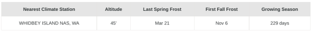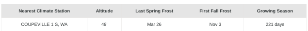 One description does not cover Whidbey Island’s gardening climates. The island is too big and long for that. The island is in that corner of the country where fifty miles west goes through a desert and into a mountainous national park. Fifty miles east drops into a temperate rain forest with over a hundred inches per year. Fifty miles north to south barely touches the north and south parts of the island (at least by car). Coupeville ain’t Clinton.